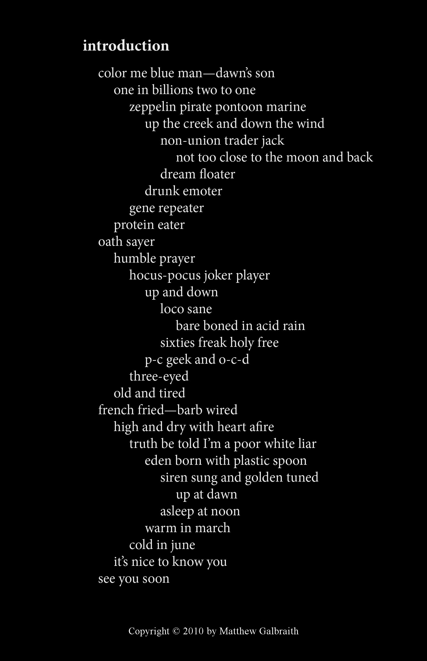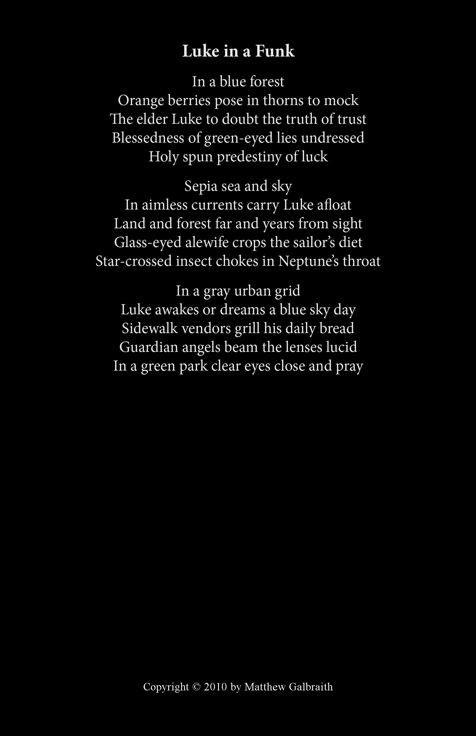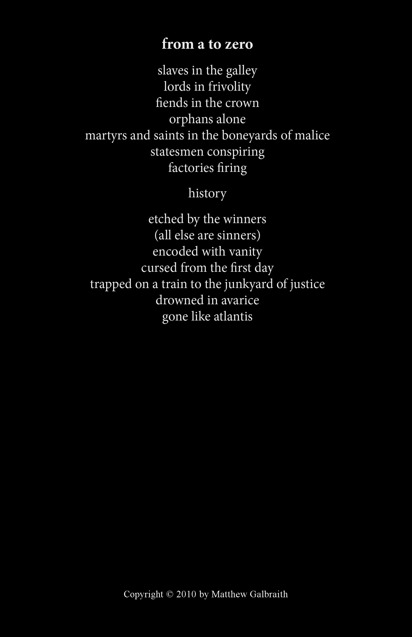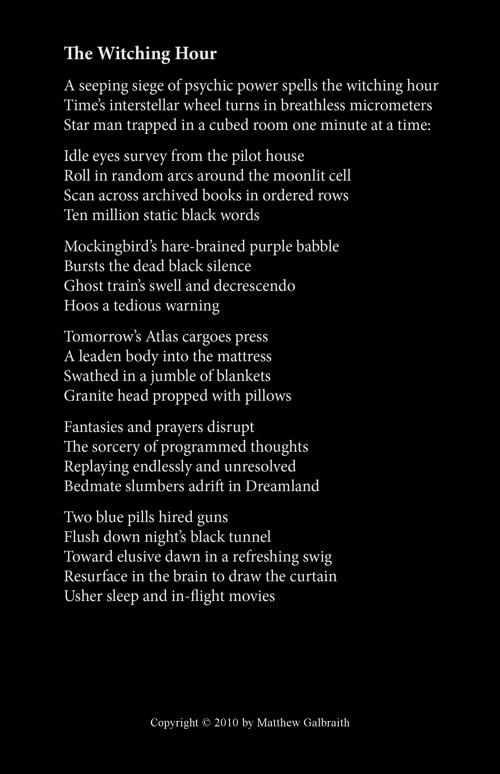 Cover Design & Poems Copyright © 2010 by Matthew Galbraith.