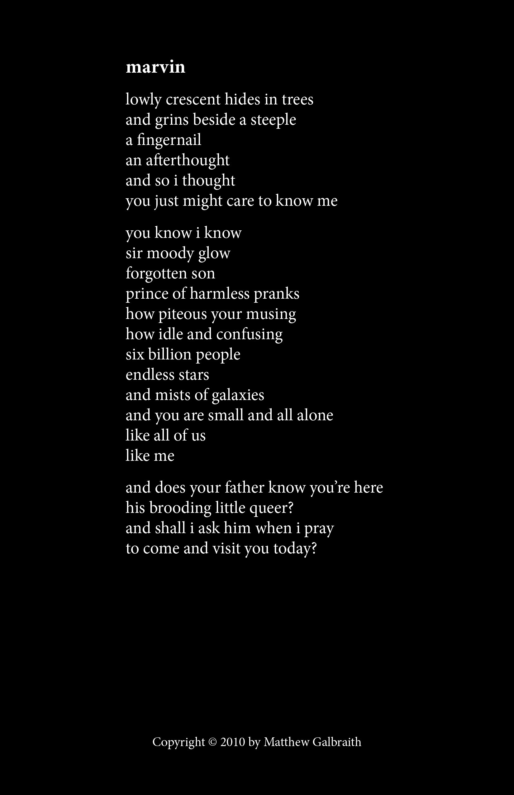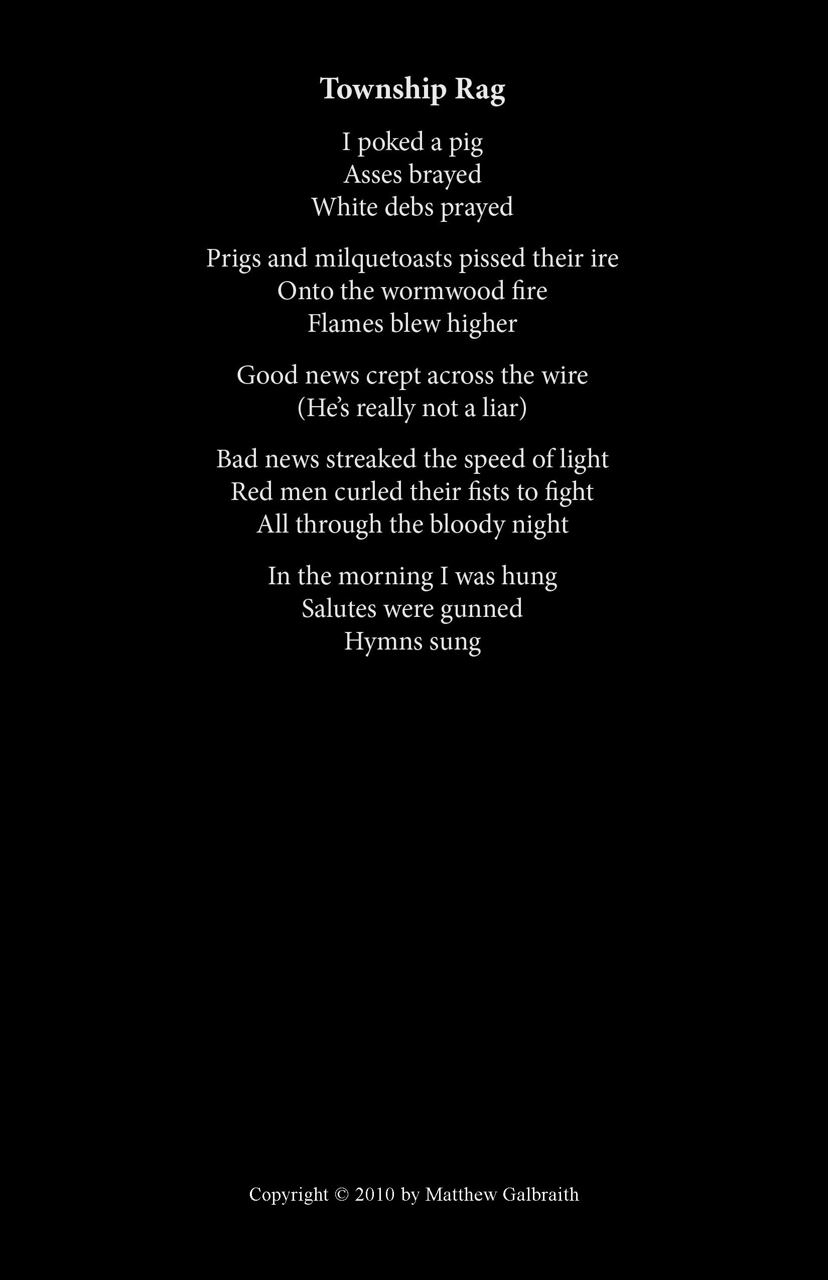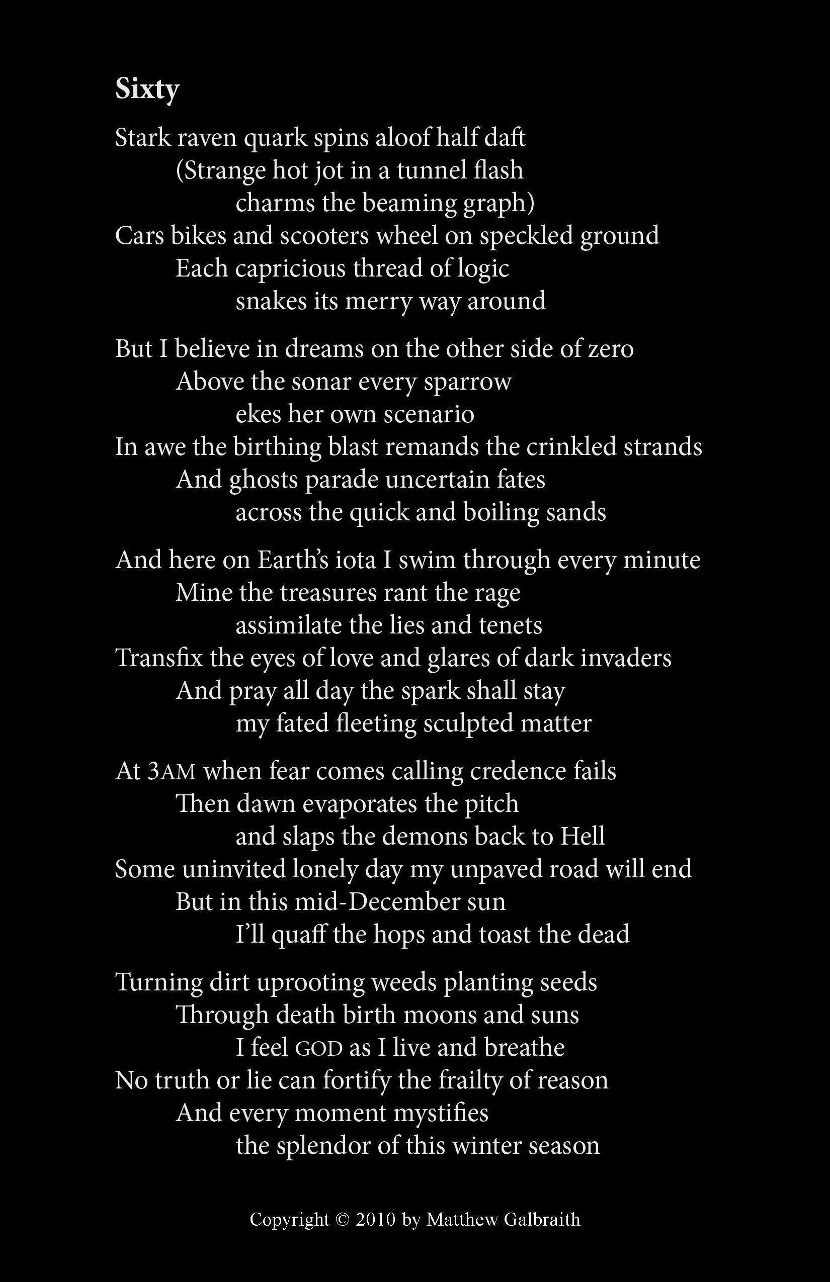 Cover Design & Poems Copyright © 2010 by Matthew Galbraith.