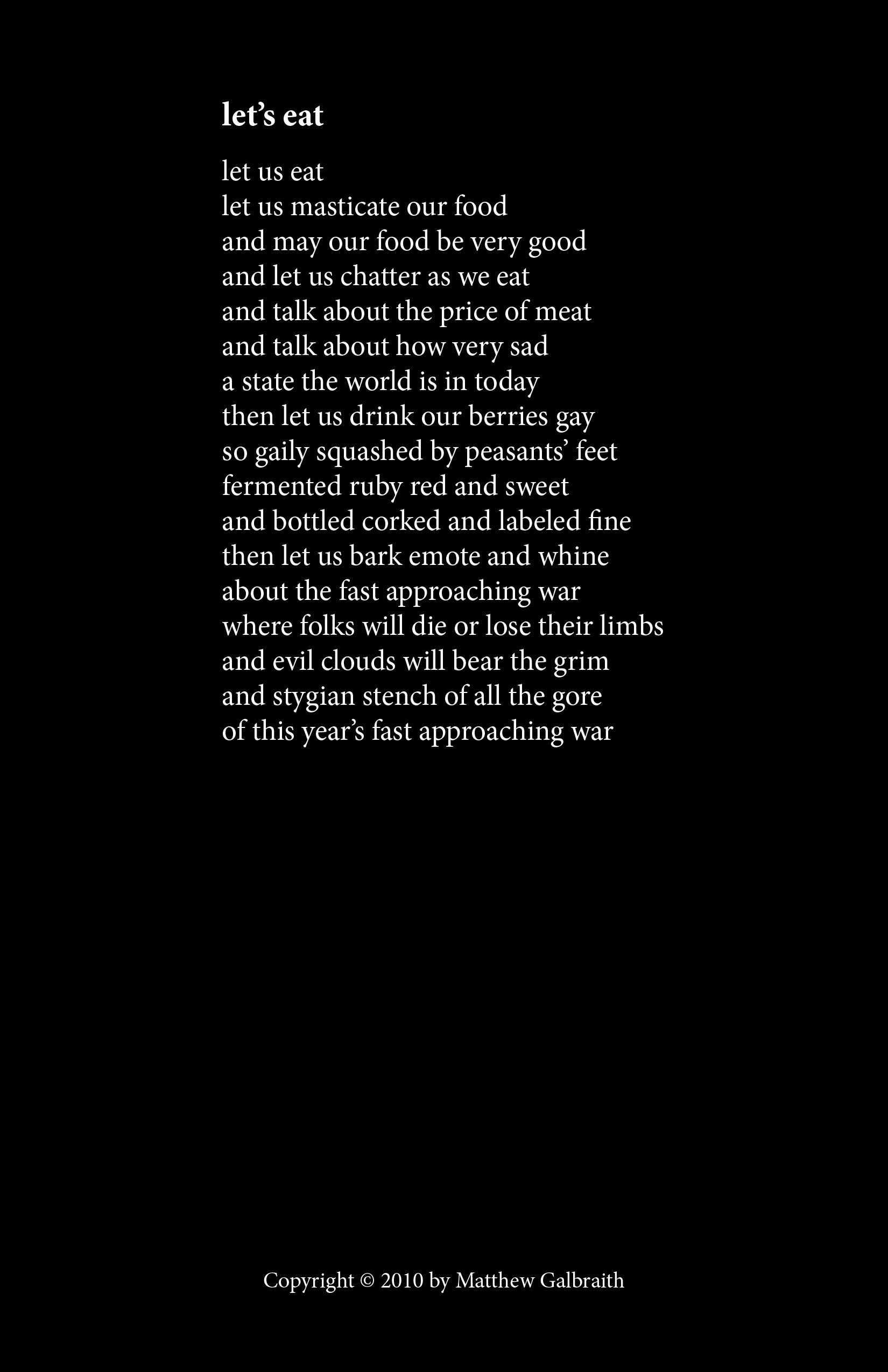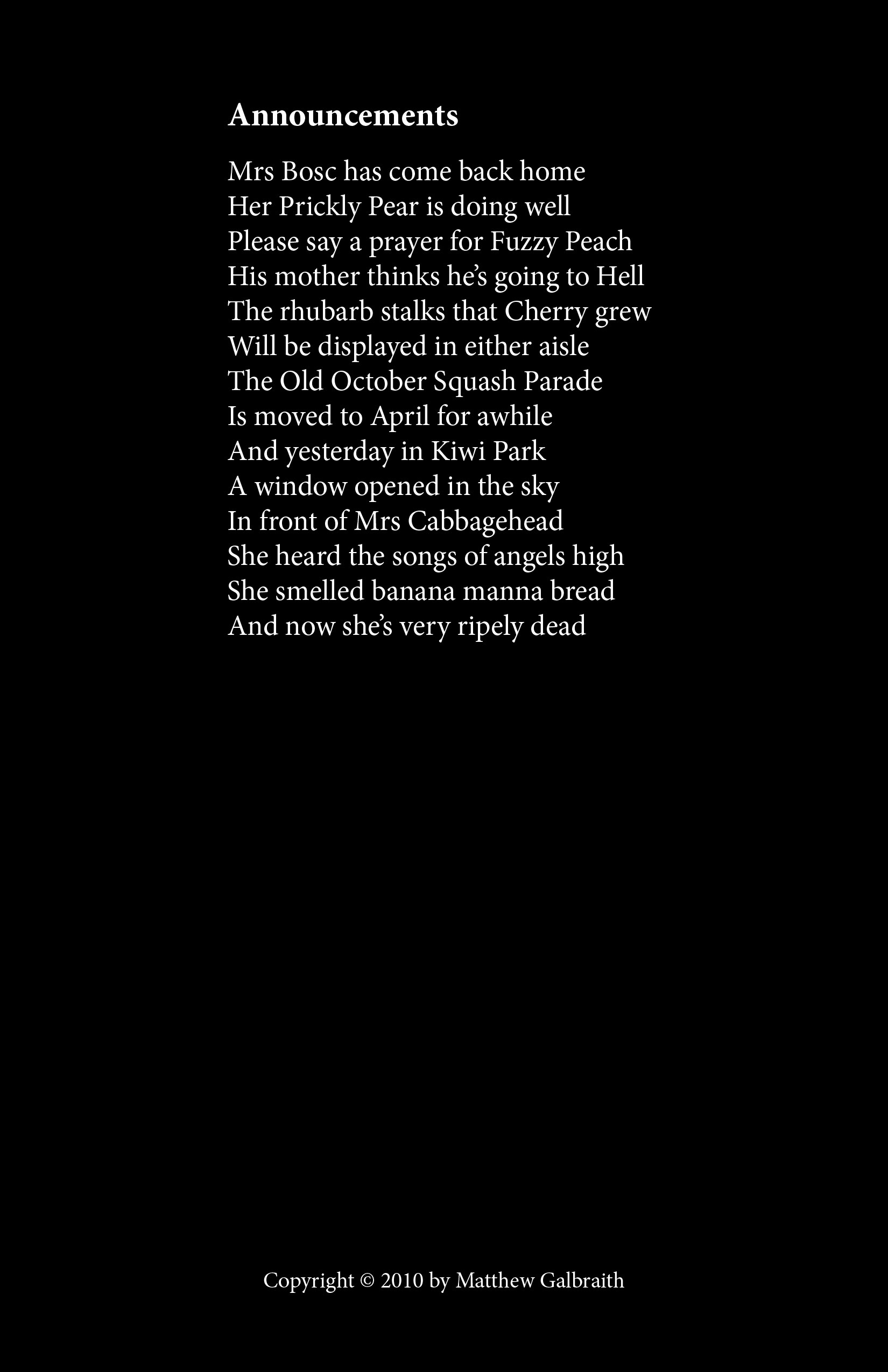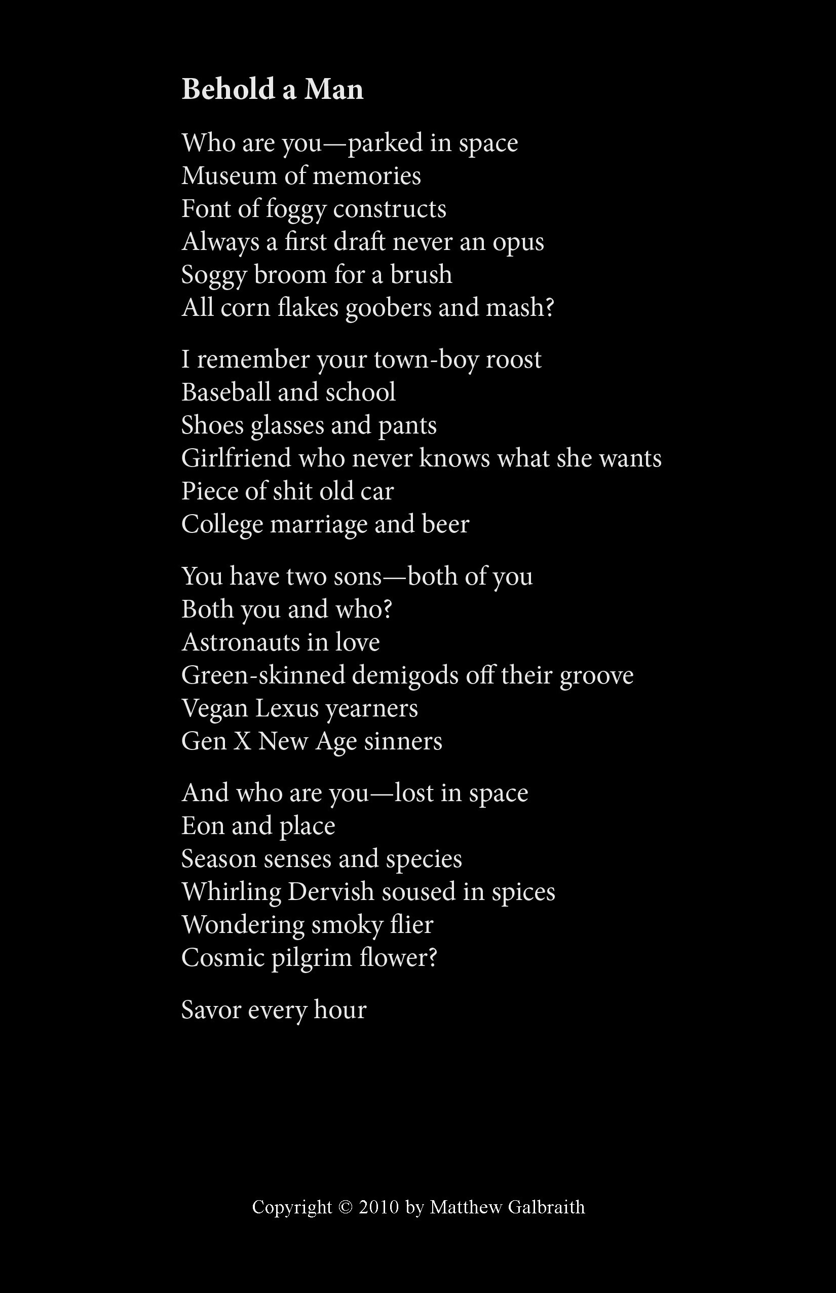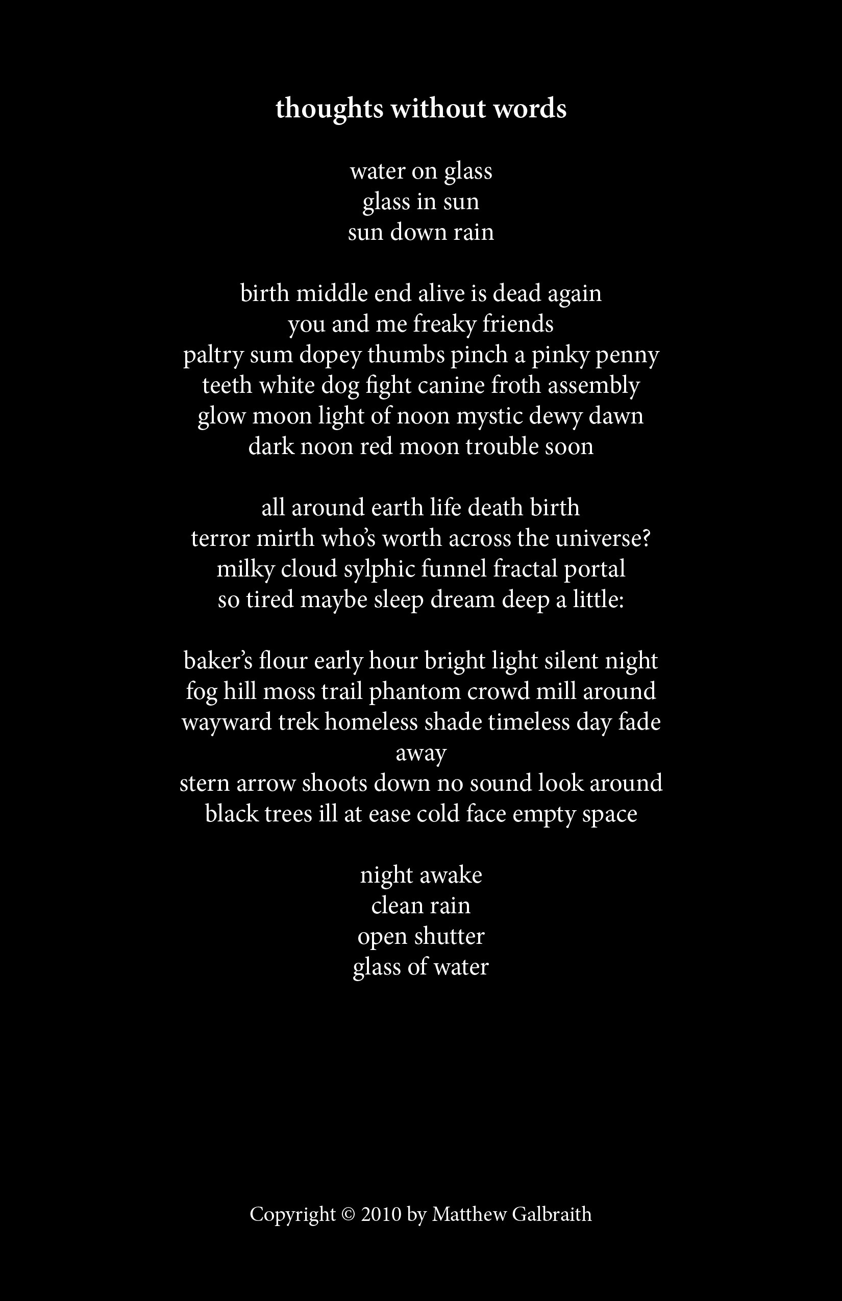 Cover Design & Poems Copyright © 2010 by Matthew Galbraith.